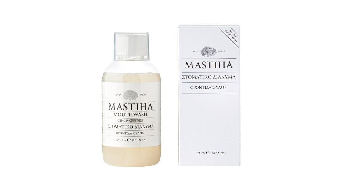 Στοματικό διάλυμα με γεύση μαστίχας που συμβάλλει στην καταπολέμηση της βακτηριακής πλάκας, στην πρόληψη φλεγμονών των ούλων και χαρίζει δροσερή αναπνοή.