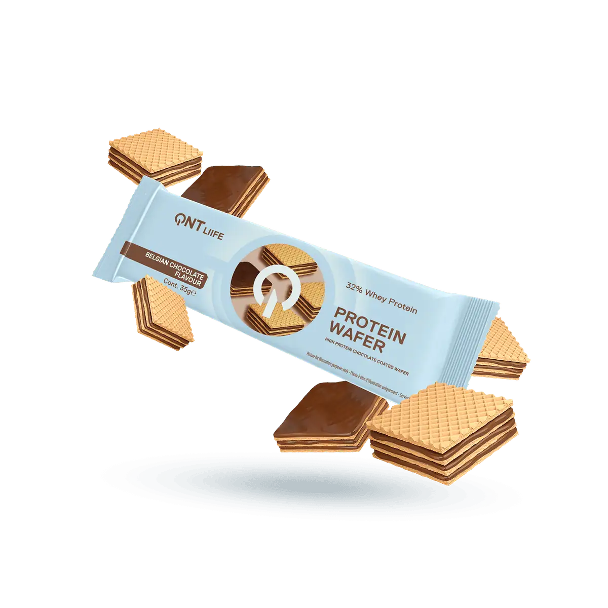 Αυτή η νόστιμη μπάρα πρωτεΐνης PROTEIN WAFER BAR της QNT περιέχει 32% αγνές πρωτεΐνες ορού γάλακτος.